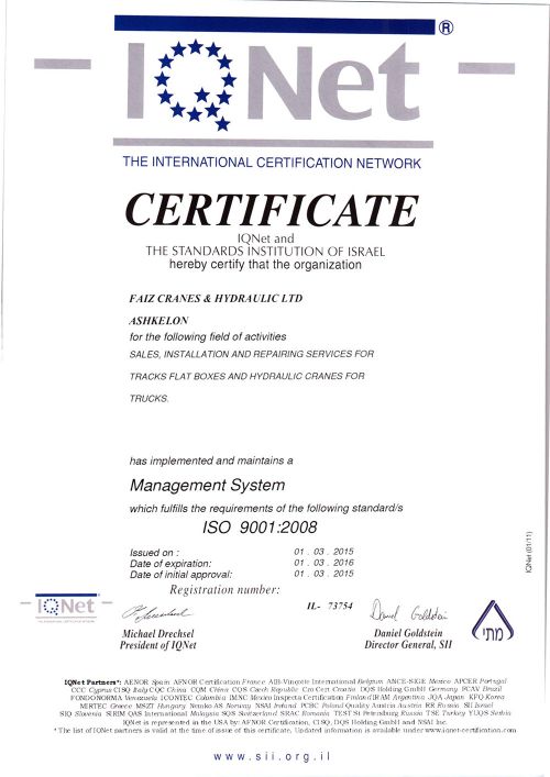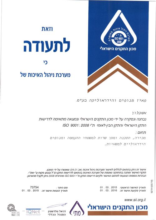 חברתנו מחויבת לנהל מערכת איכות על פי דרישות התקן ISO 9001.