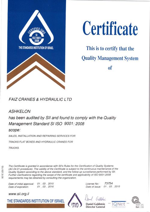 הייעוד העיקרי של "פאיז מנופים והידראוליקה בע"מ" הוא לספק ללקוחותיה מוצרים ושירותים באיכות ללא פשרות.